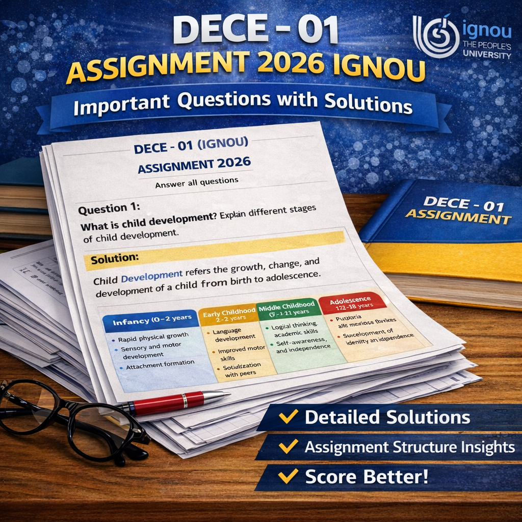 Prepare effectively for your DECE-01 Assignment 2026 (IGNOU) with well-structured answers and important questions designed according to the latest IGNOU assignment pattern. This material provides clear explanations, organized solutions, and easy-to-understand content that helps students complete their assignments correctly.